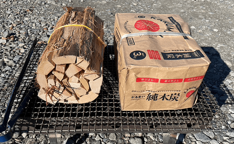 ・木炭3kg、薪1束